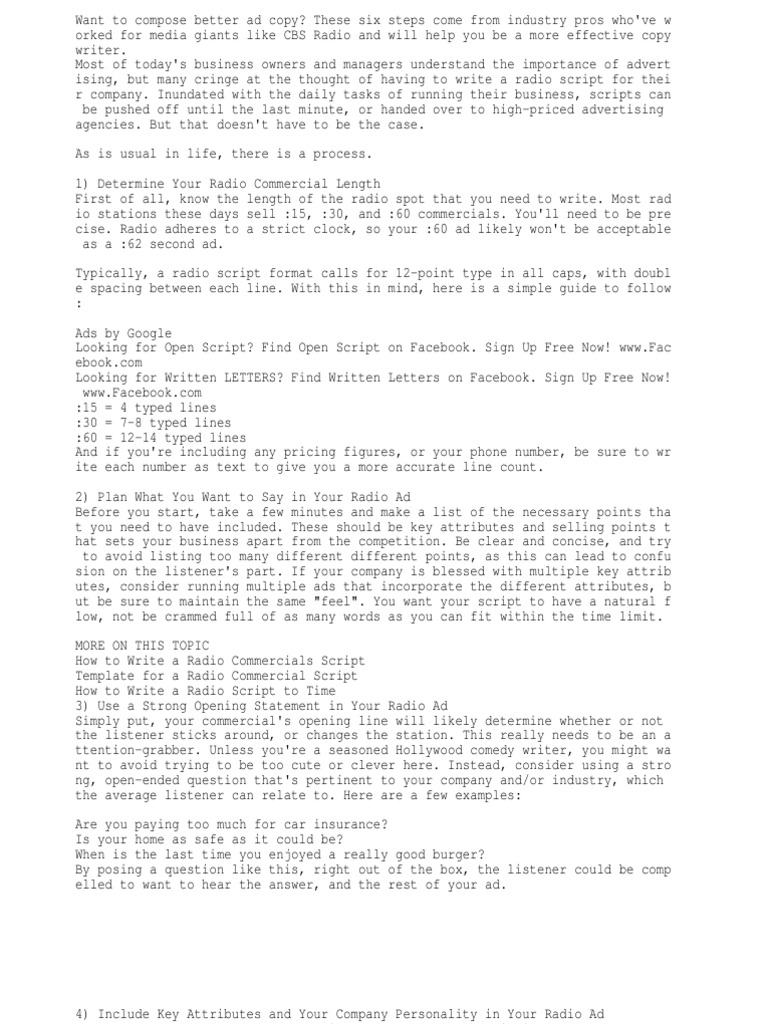 Radio Commercial Script Writing Txt Screenplay Advertising
