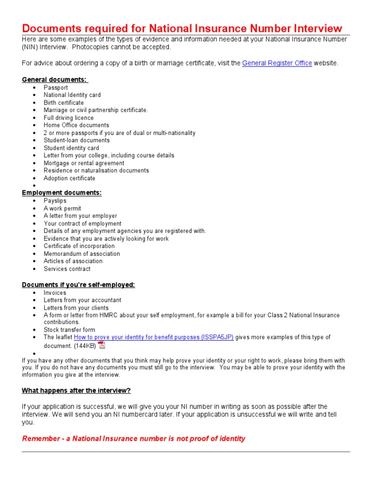 Nin Interview Doc Identity Document Government Information