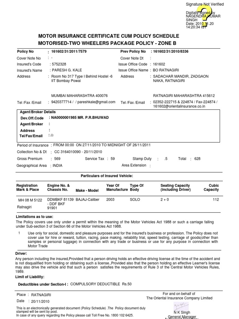 Bajaj Allianz Third Party Bike Insurance Policy Sample Liability