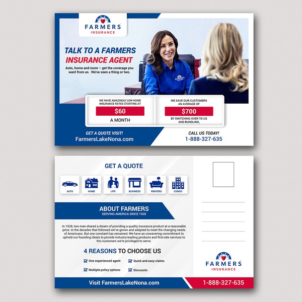 Farmers Insurance Post Card Design Postcard Flyer Or Print Contest 99designs