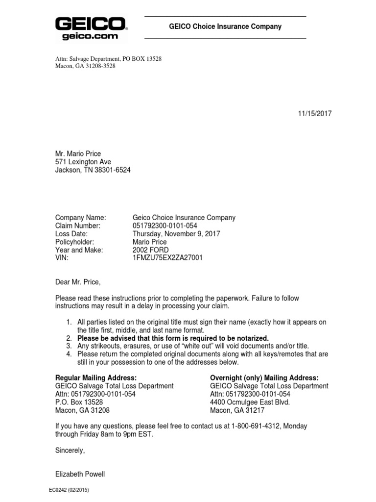 Geico Insurance Total Loss Claim