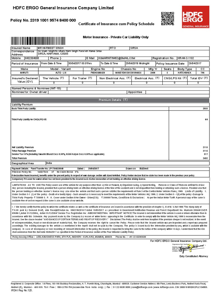 Pdf Hdfc Ergo General Insurance Company Limited 2 Fa Certificate
